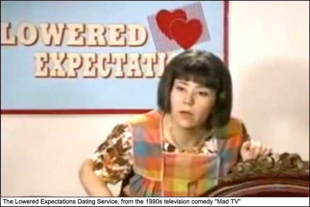 But am I accepting imperfection too easily? Have I needlessly signed up for “The Lowered Expectations Dating Service”?