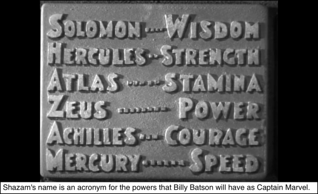But who was Captain Marvel? Like the character of Mongo in “Blazing Saddles,” Captain Marvel was less a “who” than a “what.” He was the embodiment of abilities from Solomon, Hercules, Atlas, Zeus, Achilles, and Mercury: names whose first letters spell “Shazam:”