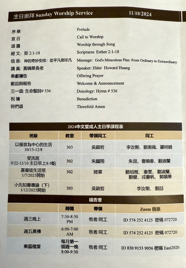 It was a little discouraging how much I didn’t understand. First, everyone talked fast, but that was expected. Second, the readings (from the Bible’s Book of Esther) were projected on computer screens at the front. Chinese can be written either horizontally (left to right) or vertically (top to bottom). The readings started out horizontal but then unpredictably switched to vertical, back and forth. For someone like me who was already struggling to read the text, it was hard to keep up.